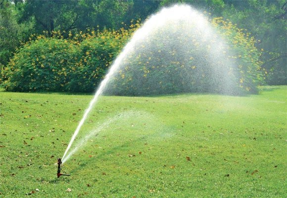 Não negligencie as regas no verão, mas também não exagere. Como regra geral, irrigue sempre antes que o solo fique completamente seco, sempre pela manhã ou pela tarde, evitando as horas mais quentes do dia. Se as folhas começarem a enrolar ou ficarem marcas amassadas das suas pegadas no gramado, é sinal de que o gramado está com sede e está na hora de uma rega de emergência. É melhor regar copiosamente em intervalos maiores, do que regar toda hora. Este manejo estimula o aprofundamento das raízes das gramíneas e as tornam mas resistentes a futuros períodos de estiagem. Há excelentes aspersores para gramados no mercado, com diversas funcionalidades e para todos os bolsos.